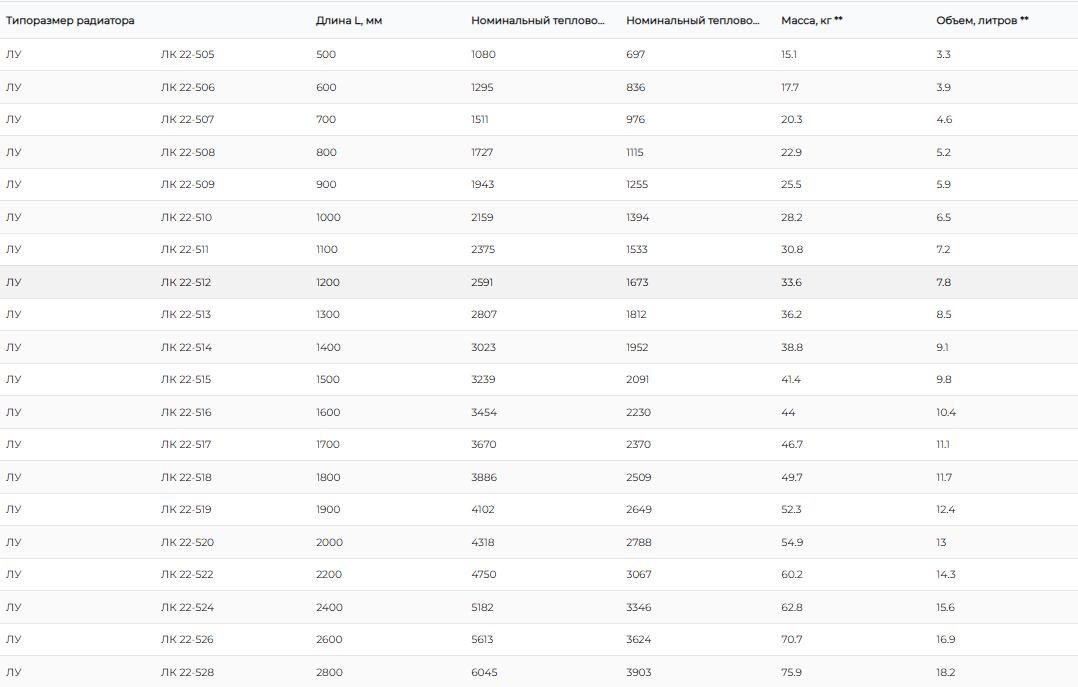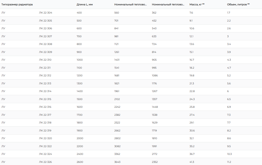 Данный тип радиаторов представлен высотами 300, 500 мм и длинами от 400 до 3000 мм.